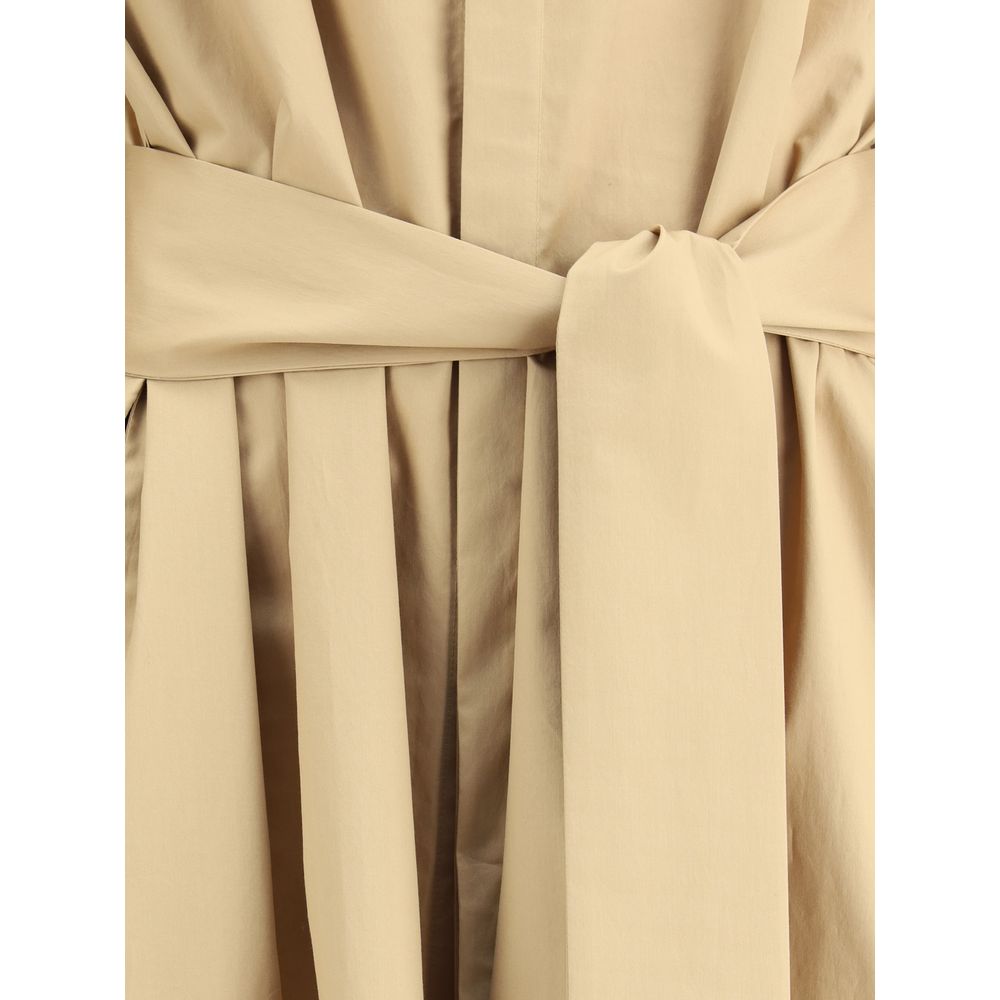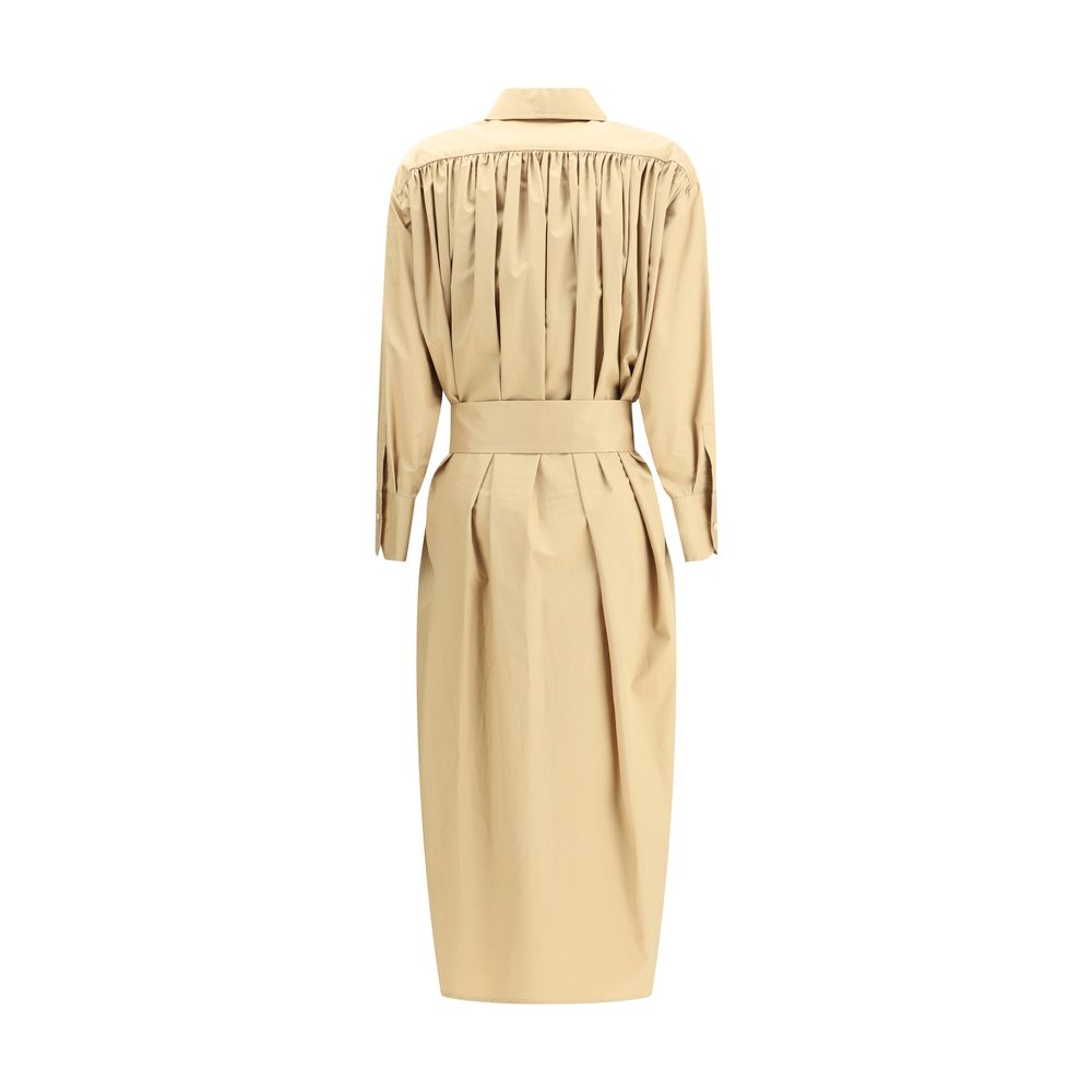 The Balloon Dress by Sa Su Phi fine breathable cotton is distinguished by its elegant volume that drapes fluidly over the body, balancing structure and lightness. Gathered details at the back create a sculptural effect, adding depth to a minimalist and sophisticated design. The pointed collar and high cuffs lend a modern touch, while the two side welt pockets offer practicality. Slits on the side panels allow the matching belt to be looped through the front for a defined, feminine silhouette.