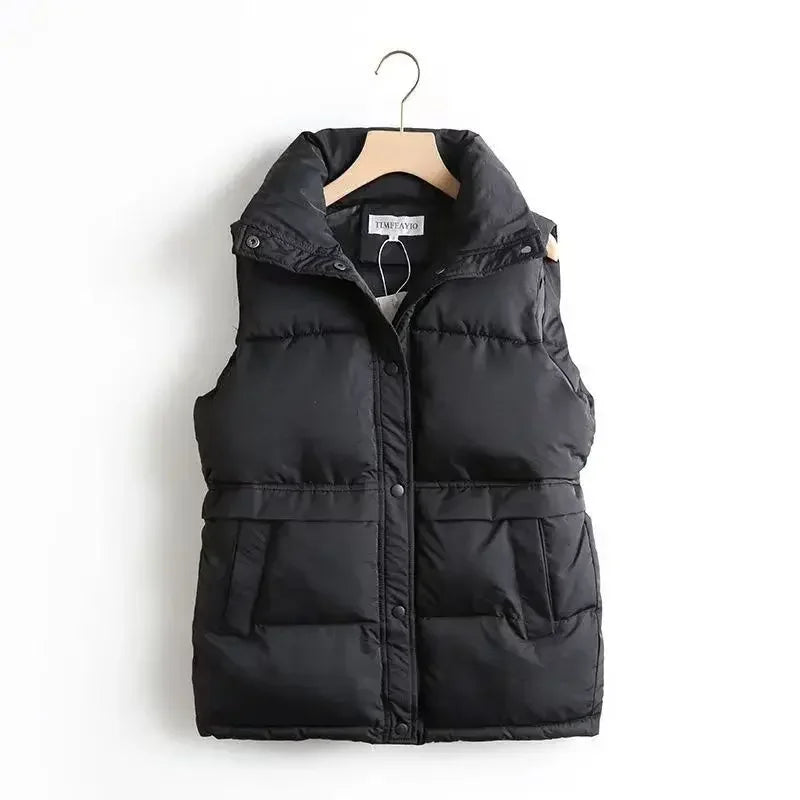 Women Parkas Stand Collar Single Breasted Coats Autumn Winter Vest Coat Sleeveless Casual Vests Elegant Jackets Thick Warm 2024